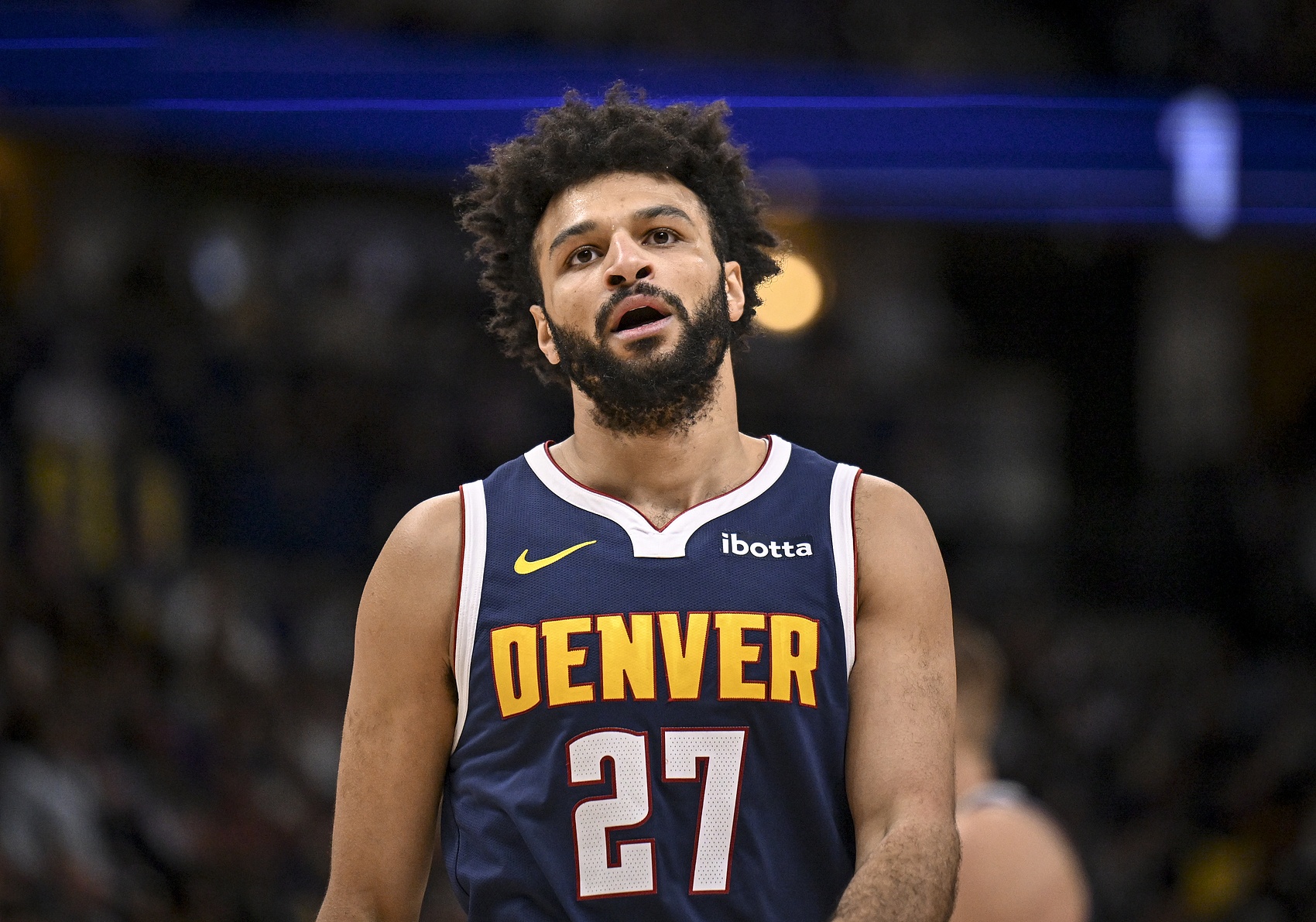 上半场比赛,贾马尔-穆雷进攻端手感不错,里突外投能止血,但阻挡不住对手攻势,他10中5,三分3中1,罚球2中2拿到13分2助攻1抢断,正负值-7。
